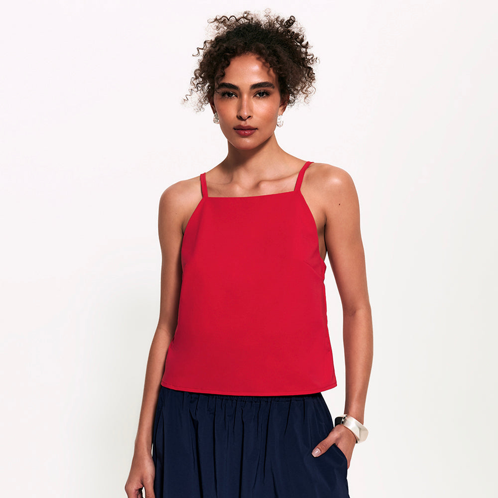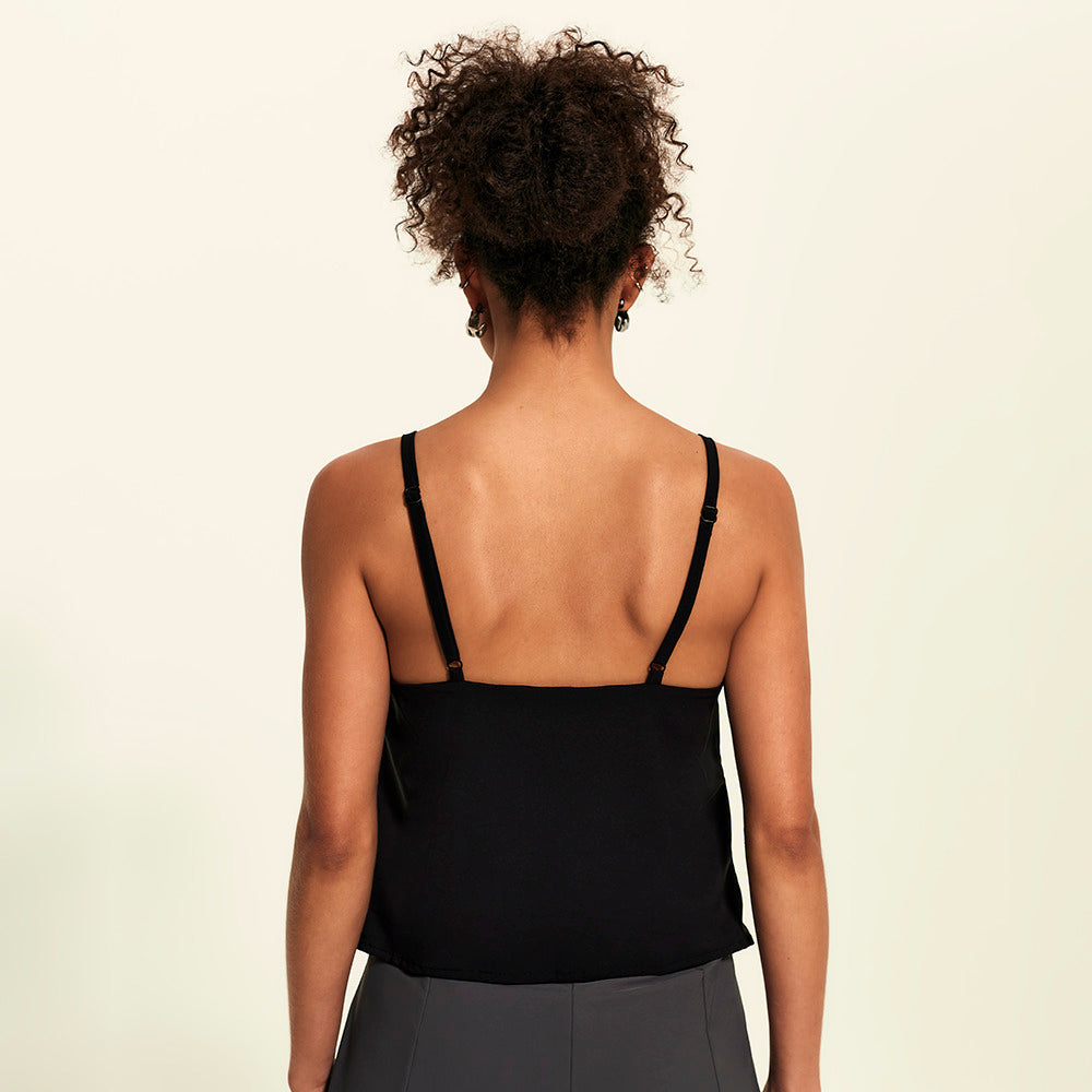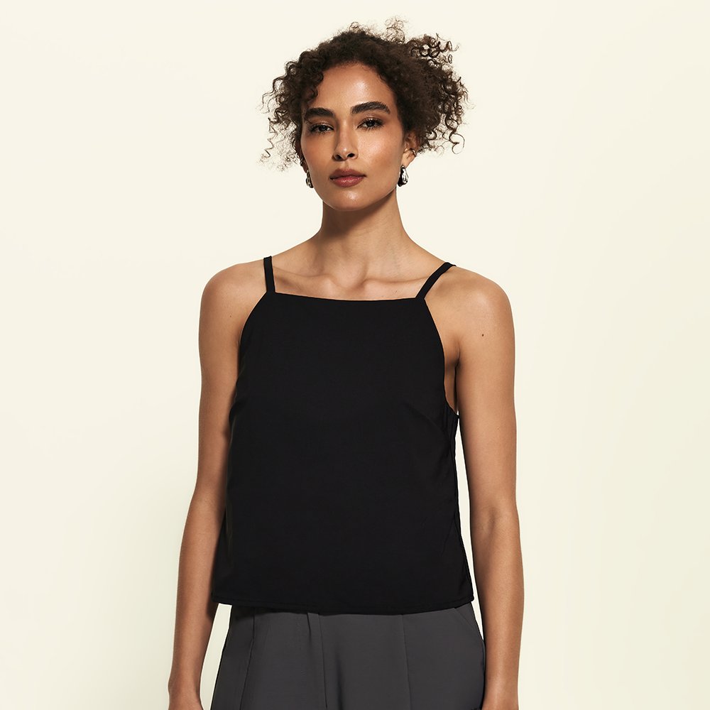 Prazer, a evolução das regatas arrumadas. Essa blusa tem decote reto fechado, forro interno e alças finas com reguladores no mesmo tom da peça, tudo pensado pra trazer um visual clean, chic e minimalista. Feita com o tecido tecnológico FutureForm®, é leve e acompanha seus movimentos sem limitar, mantendo o caimento e conforto impecáveis. Faz par perfeito com a Saia Midi Kyoto e Calça FutureForm, combinações que entregam toque sofisticado e zero esforço para usar.