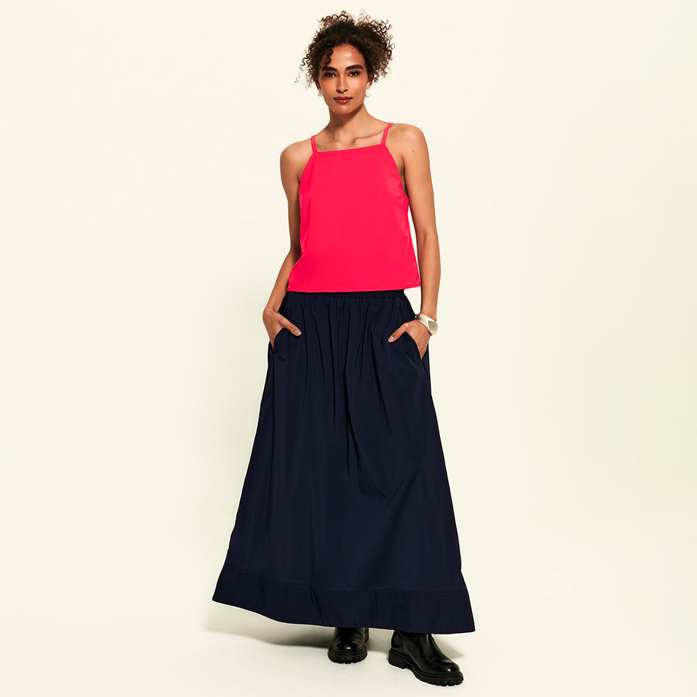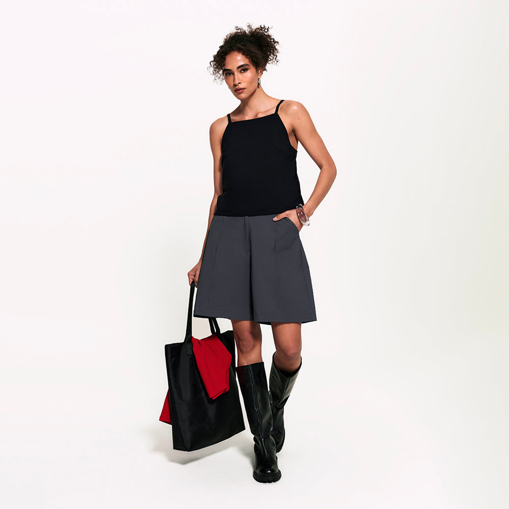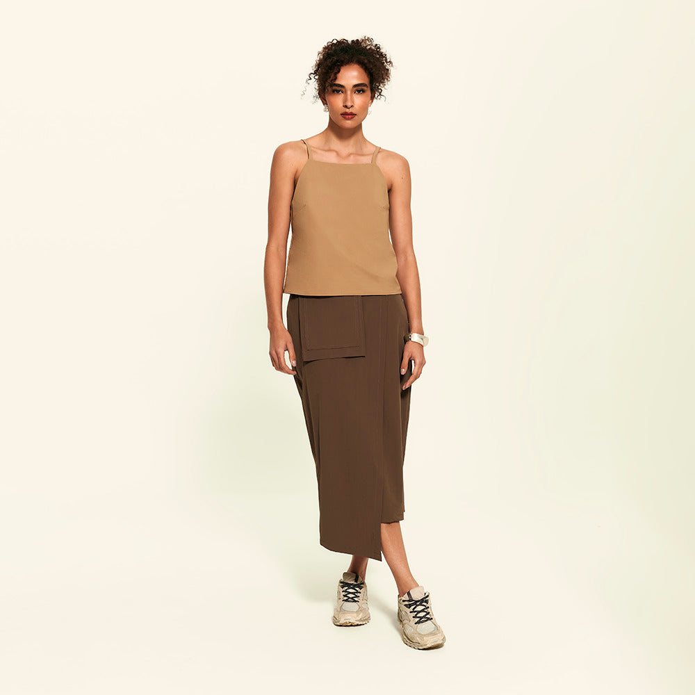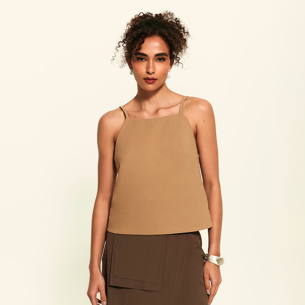 Prazer, a evolução das regatas arrumadas. Essa blusa tem decote reto fechado, forro interno e alças finas com reguladores no mesmo tom da peça, tudo pensado pra trazer um visual clean, chic e minimalista. Feita com o tecido tecnológico FutureForm®, é leve e acompanha seus movimentos sem limitar, mantendo o caimento e conforto impecáveis. Faz par perfeito com a Saia Midi Kyoto e Calça FutureForm, combinações que entregam toque sofisticado e zero esforço para usar.