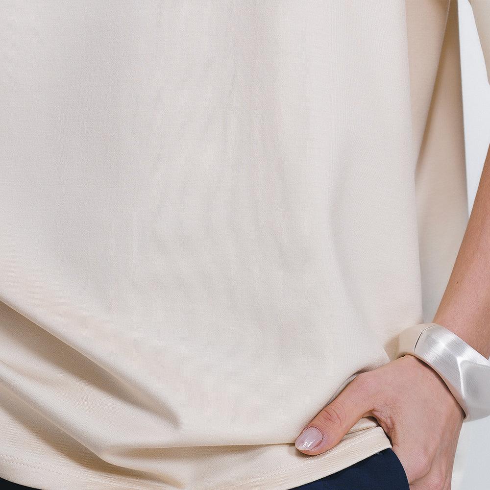 Uma proposta descontraída com caimento estruturado que incorpora a estética urbana. Feita com tecido ULTRABOLD, sua proporção é intencionalmente grande, com mangas mais compridas.